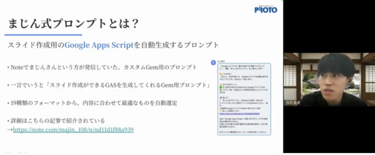 川端: 私は企画やクリエイティブのパートナーとして活用しています。例えばランディングページの構成案を作る際、GeminiのCanvas機能を使用し、自然言語で指示を出して壁打ちを行います。自分だけでは思いつかない構成案が瞬時に出てくる。まさに「第2の脳」として、自分のアイデアやクオリティをブーストしてくれる存在です。