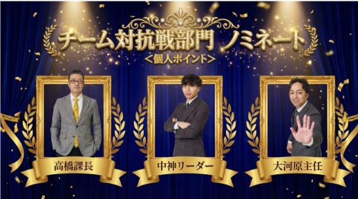 会の中盤では、事業部内で継続して実施している「感謝状」の贈呈式と、「個人ポイントランキング」の表彰式を執り行いました。