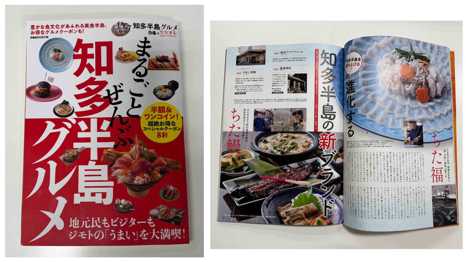 誌面では、私たちの想いに共感し、一緒に知多を盛り上げてくださっている以下の旅館様が紹介されました。透き通るような身の「てっさ」は絶品です!