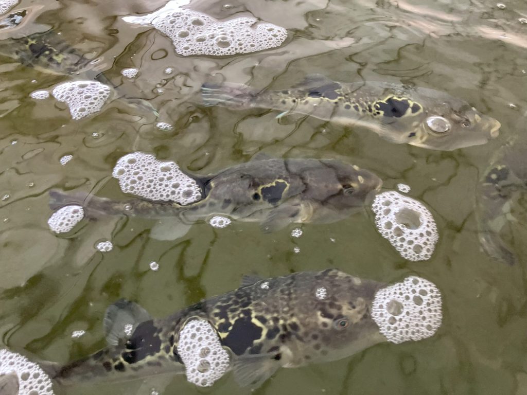 海の状態に左右されず、エアコンで水温を管理し、高濃度の酸素を送り込むことで、フグたちが「丸々と育つ」最高の環境を整えています。