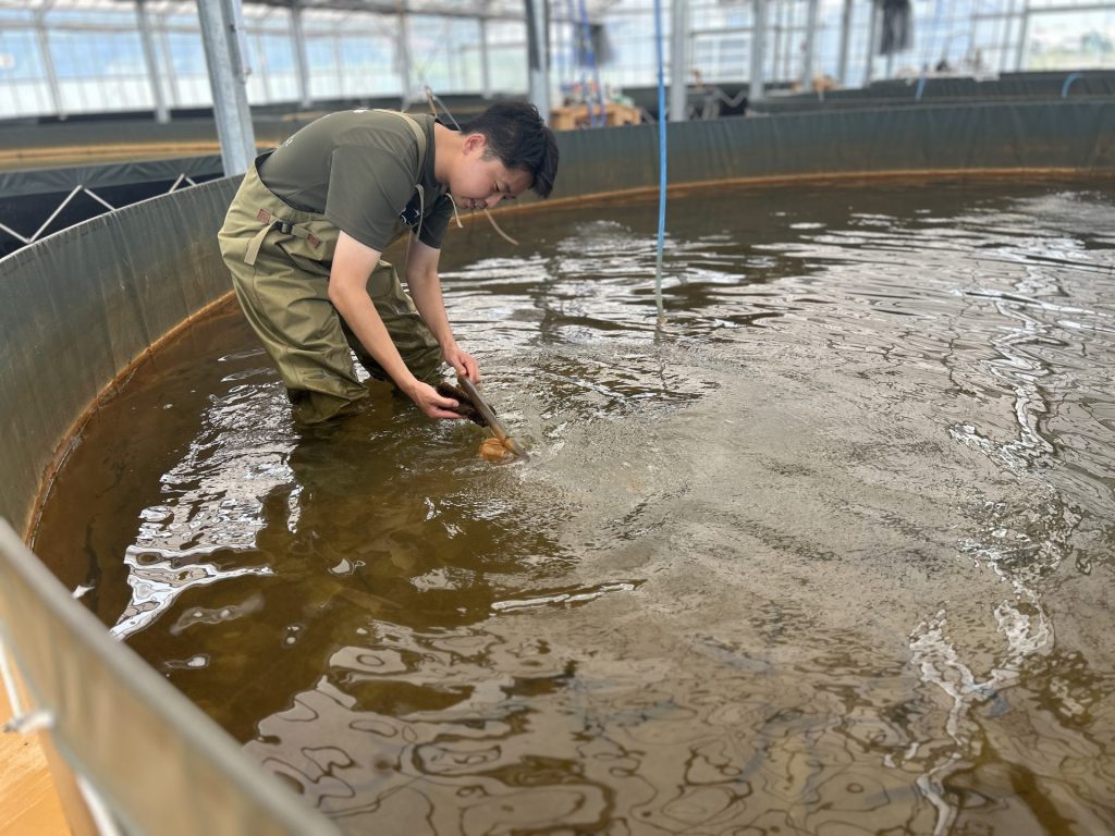 私たちが採用しているのは、井戸水を人工海水にして活用する「閉鎖循環式」の陸上養殖です。