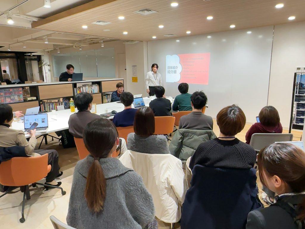 当日は、大学生から社会人まで計7つの団体にお越しいただきました。 各団体によるプレゼンテーションでは、以下の内容が共有されました。