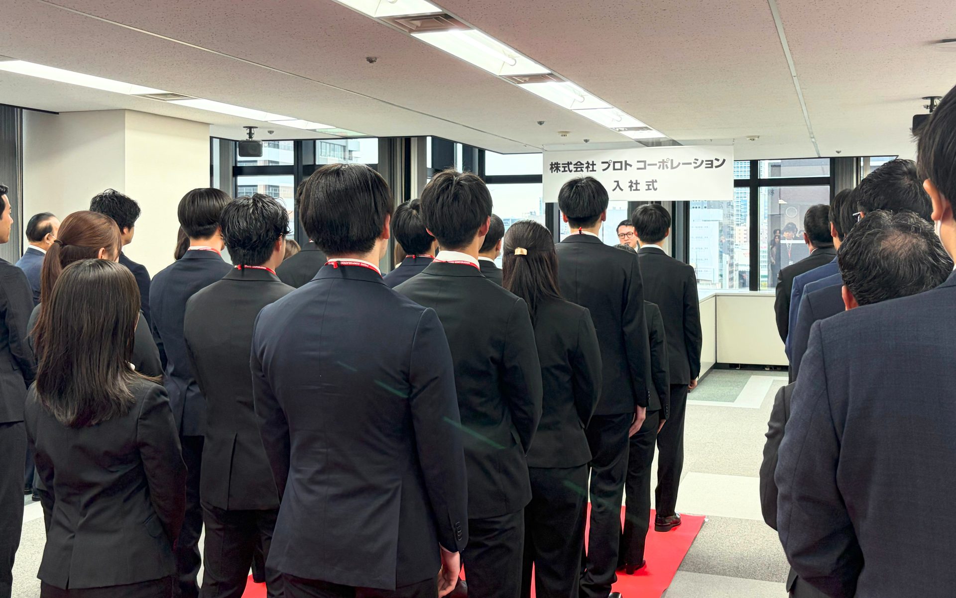 2026年4月1日。満開の桜が門出を祝う中、株式会社プロトコーポレーションでは第49期新卒社員の入社式を執り行いました。今年度は18名の新たな仲間が、期待と緊張を胸にプロトの一員としての第一歩を踏み出しました。