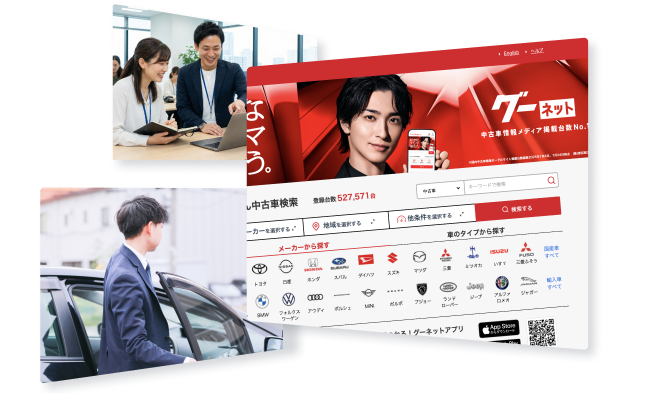 「グーネット」をはじめとする中古車領域に加え、新車、整備・板金、二輪領域で事業を展開。理想の愛車との出会いや便利なモビリディライフを支えています。