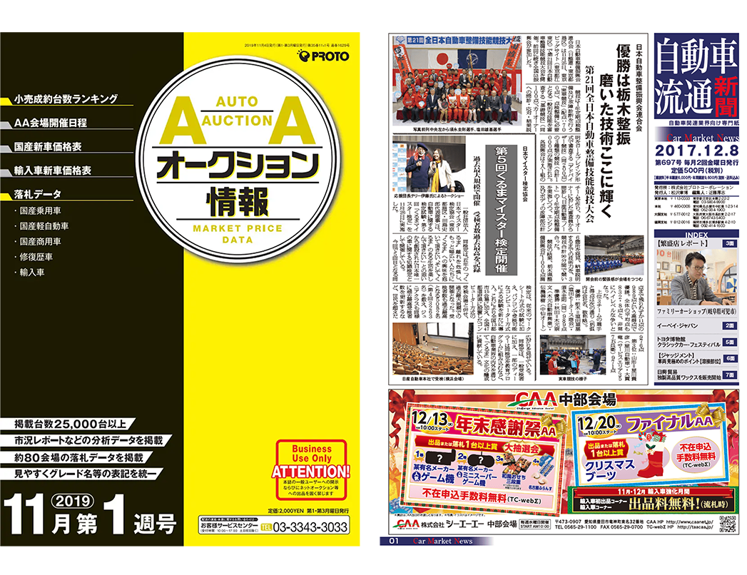 中古車オークション相場情報の「オークション情報」、プロトオリジナルのコンテンツが豊富にラインナップされた「自動車流通新聞」は、中古車業界専門紙として多くの業界関係者に読まれています。