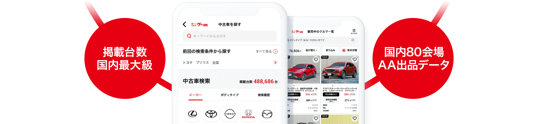 国内最大級の掲載台数を誇る「グーネット」に掲載されている膨大なデータをに加えて、国内80会場以上を網羅するAA出品データを活用した様々なデータベースを法人様に向けてご提供しております。