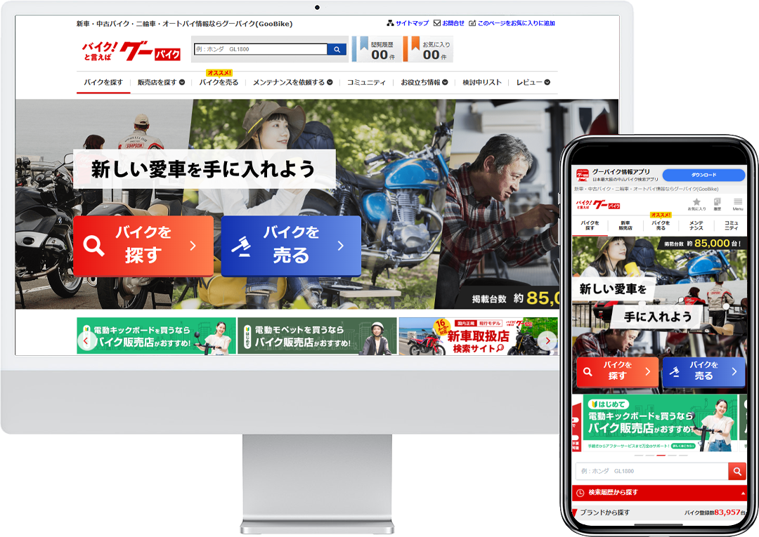 「キッカケはグーバイク」バイクを売りたい!買いたい!探したい!国内最大級の掲載情報であなたのバイクライフをサポートいたします。バイクに乗るキッカケも、バイクを乗換えるキッカケもいつも起点はいつもグーバイクから。バイクの購入はもちろん、整備店探しやバイクの売却の際には「グーバイク買取」と様々なコンテンツを準備しております。