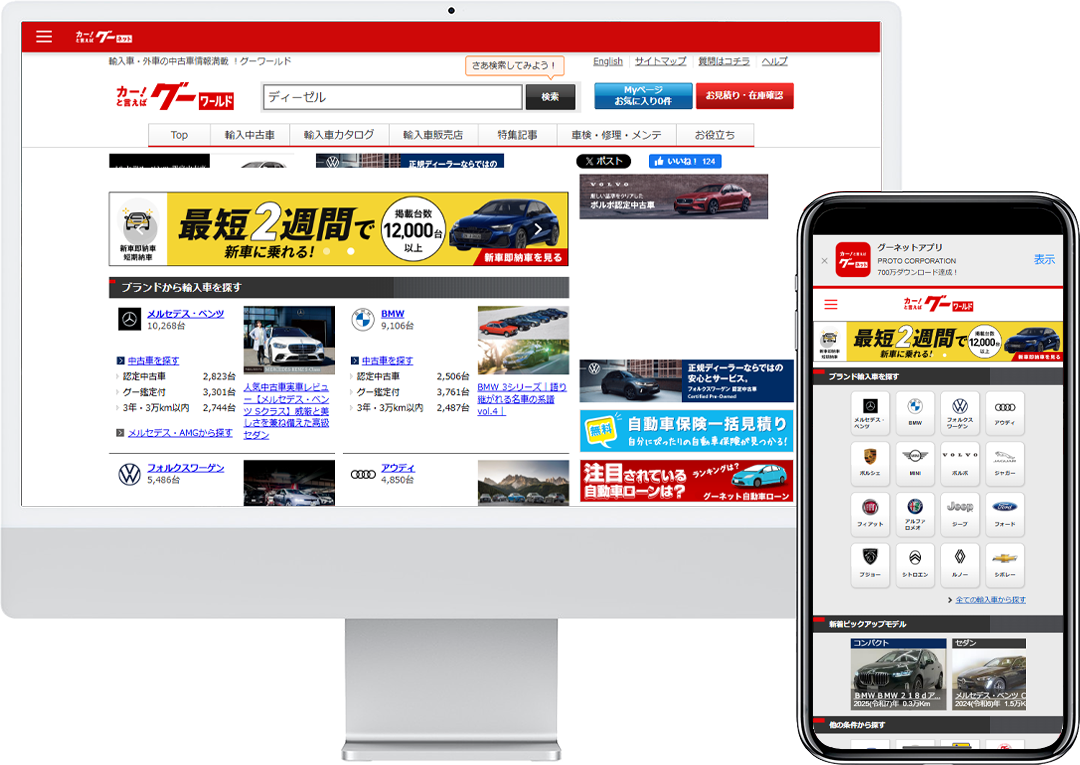 輸入車情報誌「月刊グーワールド」のwebサイト。ブランド別の中古車検索や、試乗記事の閲覧、新旧モデルのカタログチェックか可能。新車見積りやローン・保険を探したりと、輸入車の購入支援に役立つサービスを多数提供しています。