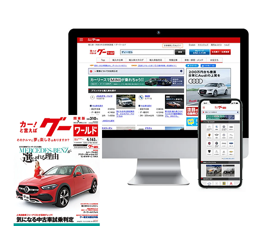 輸入車情報誌「月刊グーワールド」のwebサイト。ブランド別の中古車検索や、試乗記事の閲覧、新旧モデルのカタログチェックか可能。新車見積りやローン・保険を探したりと、輸入車の購入支援に役立つサービスを多数提供しています。