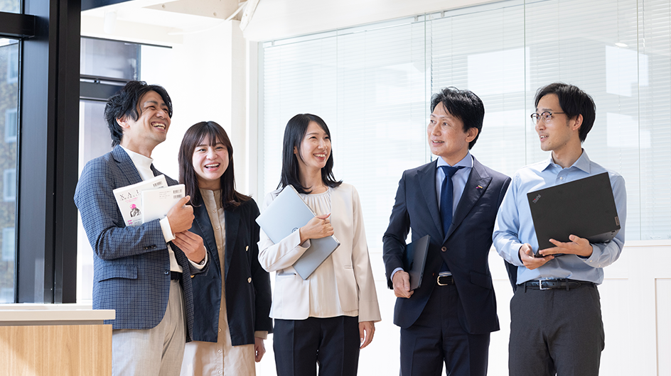 また、仕事と介護の両立支援にも力を入れ、短時間勤務制度や所定外労働の制限などを設け、全世代がキャリアを中断せずに働ける環境を整備しています。休業の取得・復帰を安心して行えるよう、取得前後の個別面談を必ず実施しています。この面談で不安をヒアリングし、業務引継ぎや復職後の働き方について、ひとりひとりに寄り添ったサポート体制を整えています。